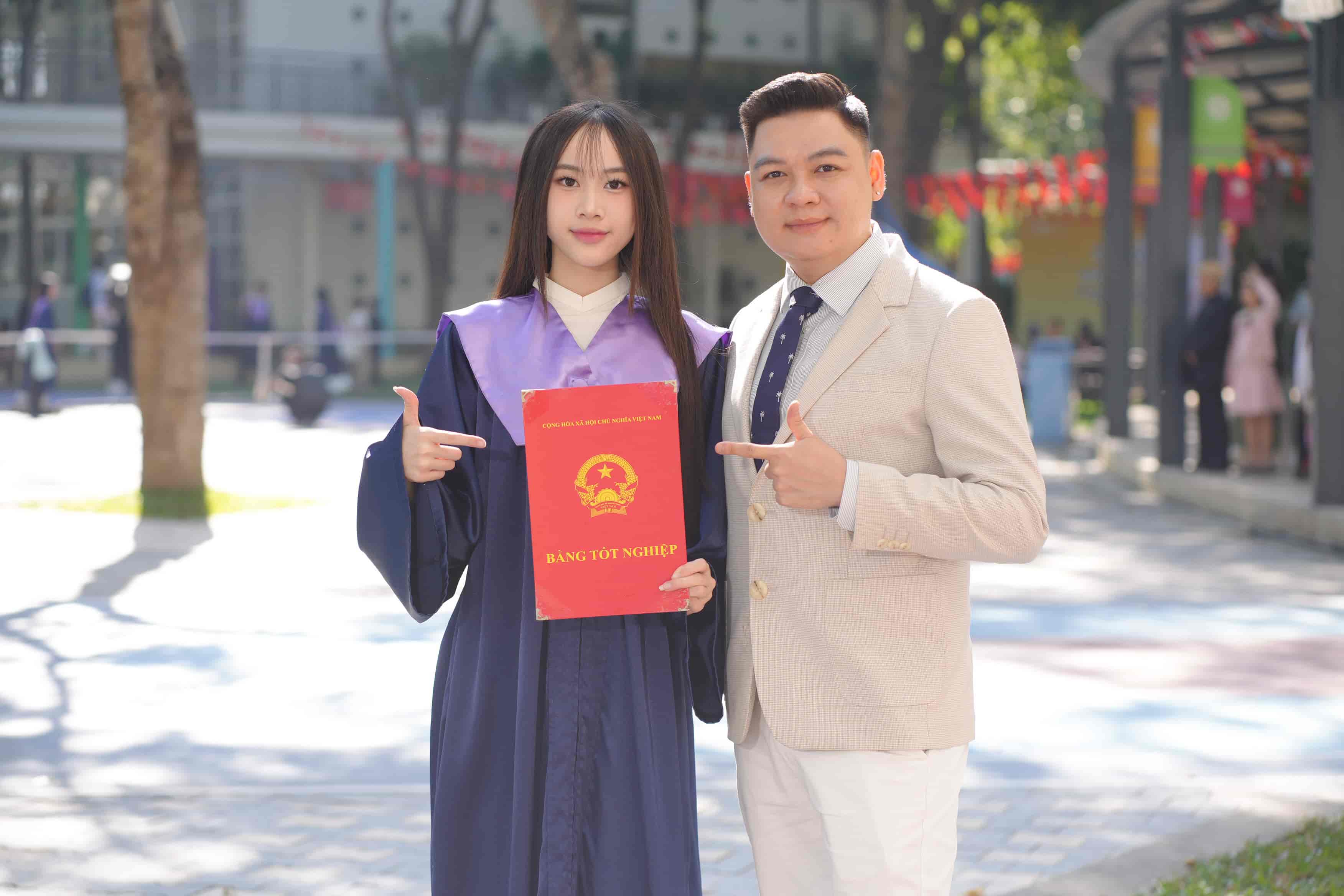 Hương Trà và thầy giáo chủ nhiệm (Ảnh: NVCC)