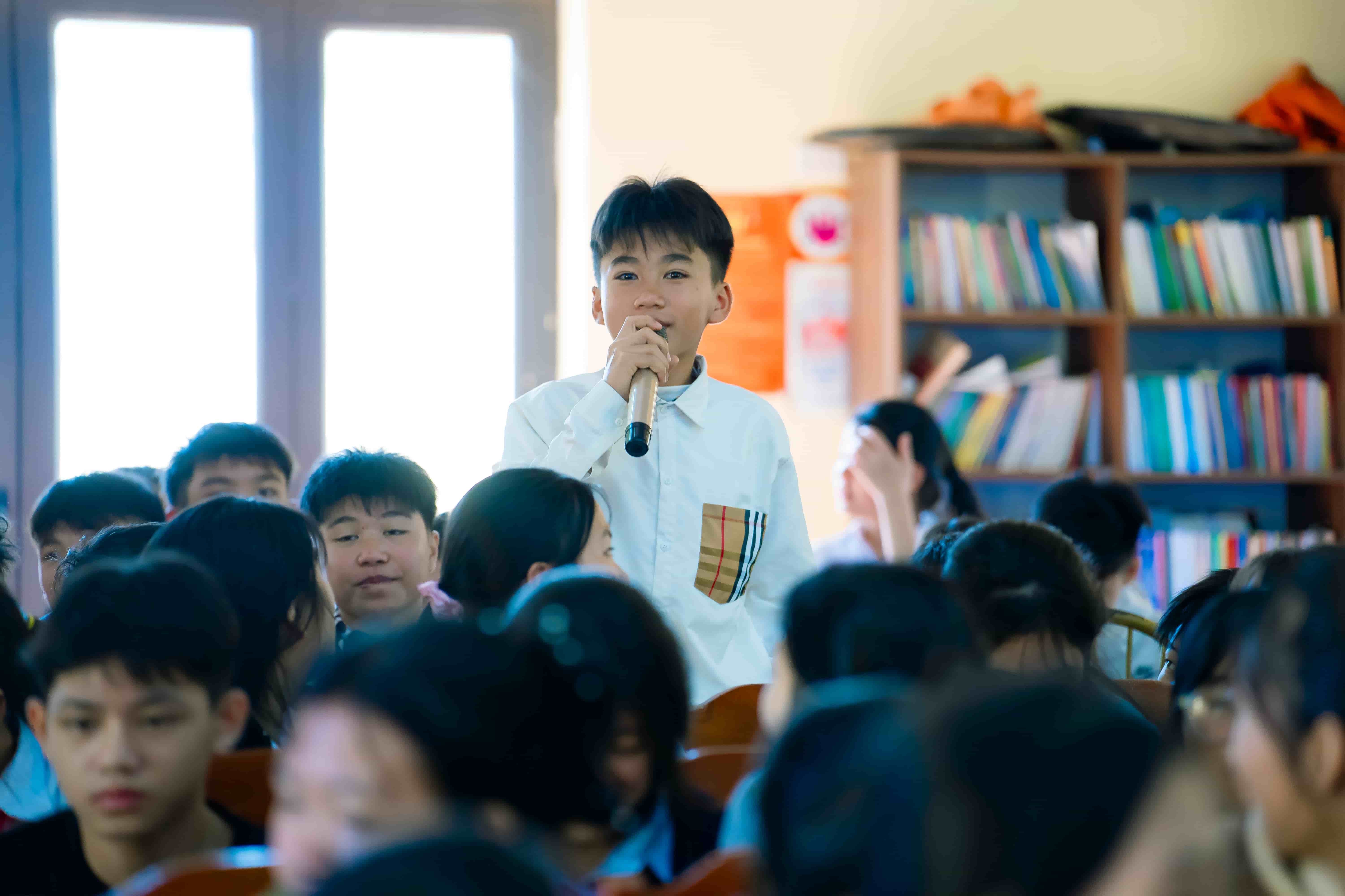 Từ tháng 9, dưới sự hướng dẫn của các thầy cô, các con bắt tay vào triển khai nhiều hoạt động: tìm hiểu về các bộ luật, truyền thông về dự án trên các trang mạng xã hội, thiết kế chương trình tuyên truyền phù hợp… Đặc biệt, các con cũng tổ chức booth quyên góp sách để bổ sung đầu sách cho thư viện trường với mong muốn khơi dậy văn hóa đọc, đam mê khám phá tri thức cho các em học sinh.