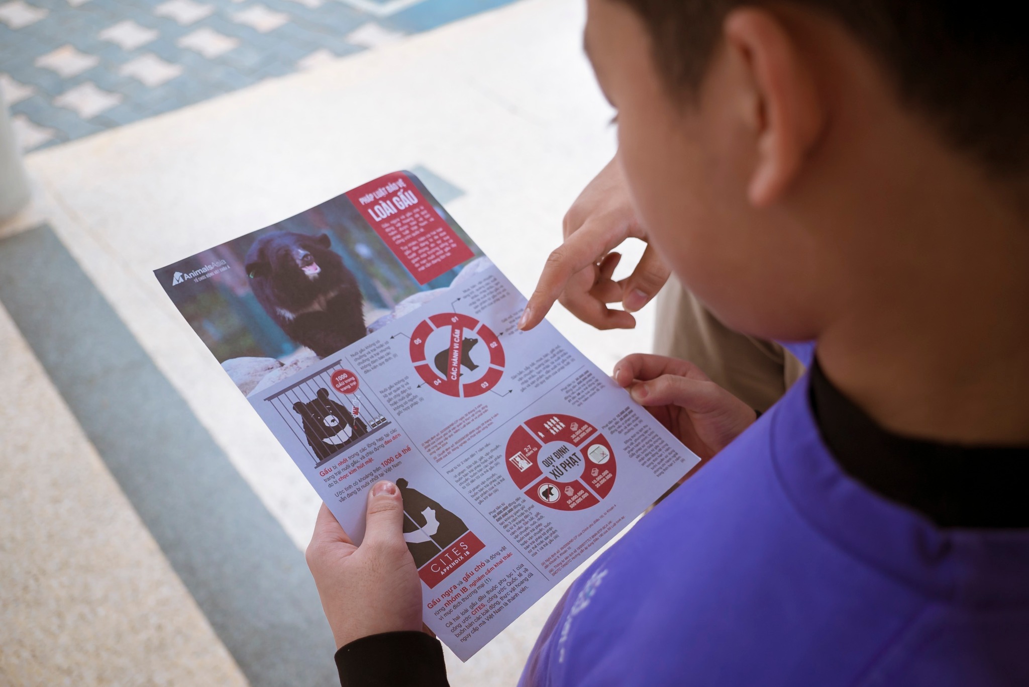 Tại đây, các con mang đến cho thầy cô và các bạn học sinh thông tin về lịch sử, đặc điểm, luật pháp và thực trạng khai thác, nhốt trái phép các loài gấu tại Việt Nam. Nhận thấy nguyên nhân của việc săn bắt gấu đến từ sự thiếu hiểu biết, các con đã giới thiệu cao thảo dược, là giải pháp thay thế an toàn nhằm chấm dứt việc sử dụng mật gấu.