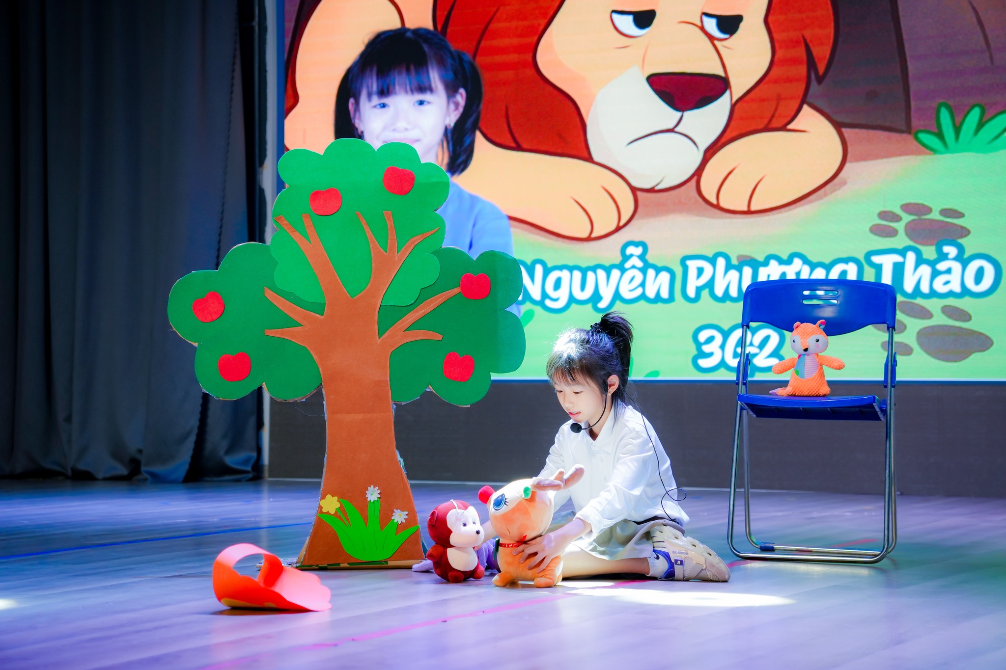Nhằm tạo cơ hội để các con rèn luyện khả năng diễn đạt, tư duy ngôn ngữ và phản xạ tiếng Anh tự nhiên, cuộc thi Storytelling đã trở thành sân chơi thường niên đầy hấp dẫn dành cho học sinh Tiểu học từ Khối 1 đến Khối 3.