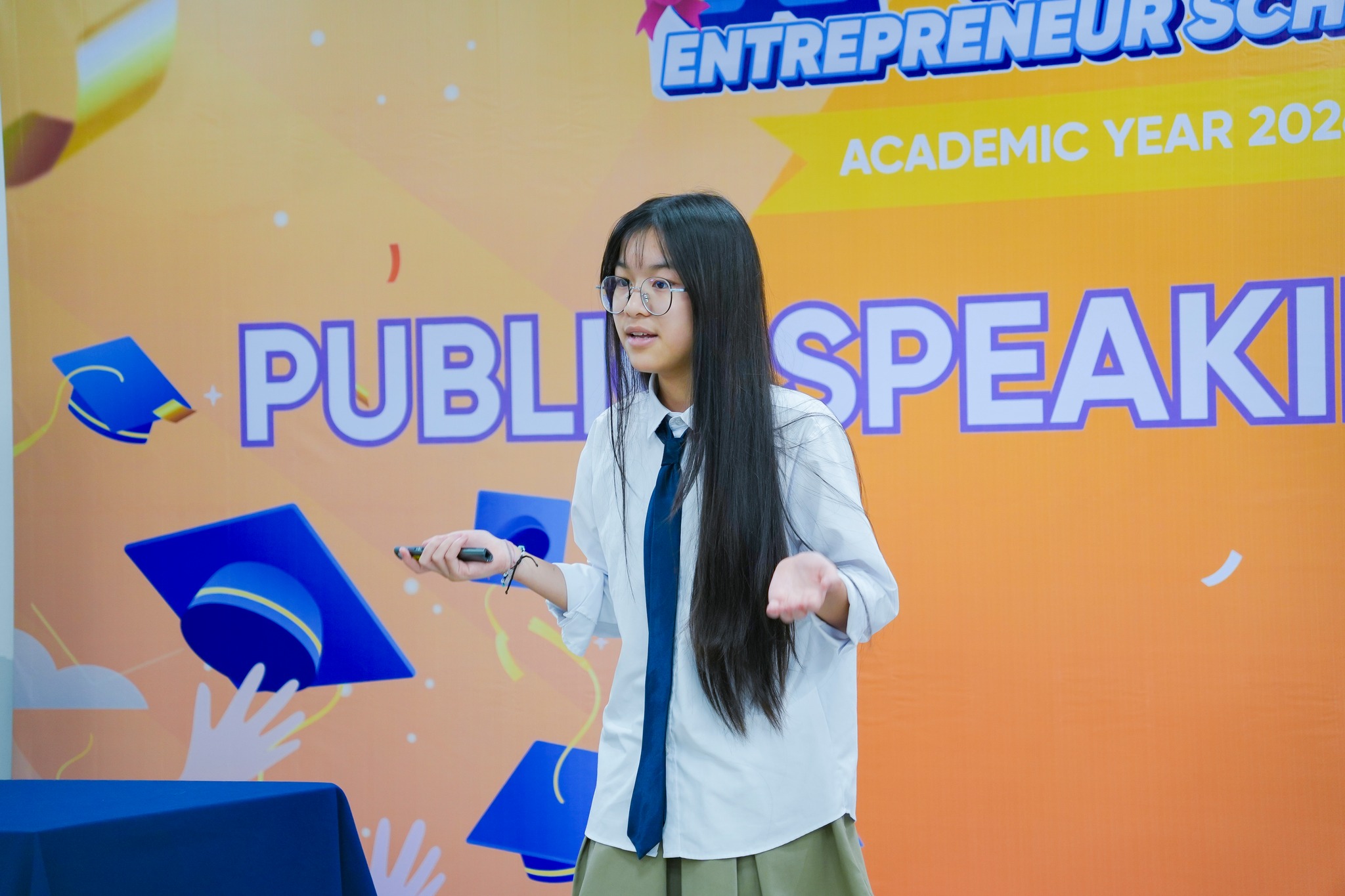 Phạm Nhật Minh (8C1) chia sẻ: “Con đã dành nhiều ngày để chuẩn bị cho bài hùng biện này. Dù có chút hồi hộp, con đã cố gắng thể hiện tốt nhất trước Ban Giám khảo. Con mong có thể giành tấm vé vào vòng tiếp theo và tiến gần hơn tới mục tiêu lớn nhất của mình là chinh phục học bổng A Level Entrepreneur.”