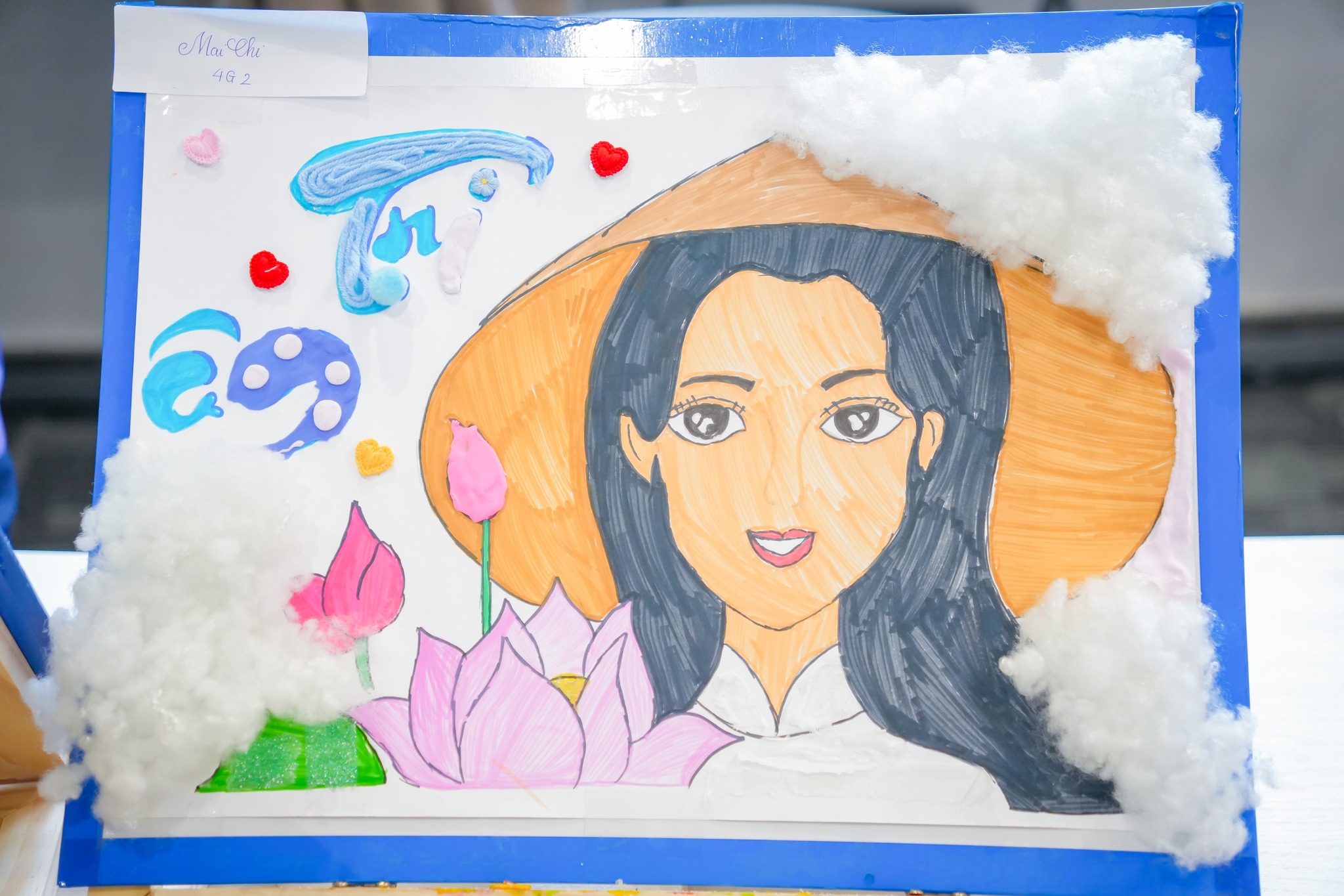 Hành trình tạo nên tác phẩm của các con cũng chứa đầy sự tâm huyết. Con Lâm Anh (4G1) cho biết mình phải tranh thủ cả hai ngày cuối tuần để hoàn thiện phần trang trí thủ công, trong khi bức tranh chính được vẽ trong ba tiếng. Nhóm các con học sinh lớp 3A6 gồm Minh Quân, Minh Trí, Bảo Khuê lại tận dụng từng giờ ra chơi để cùng nhau hoàn thành bức tranh vẽ về cô chủ nhiệm vì đó là khoảng thời gian thuận tiện nhất.