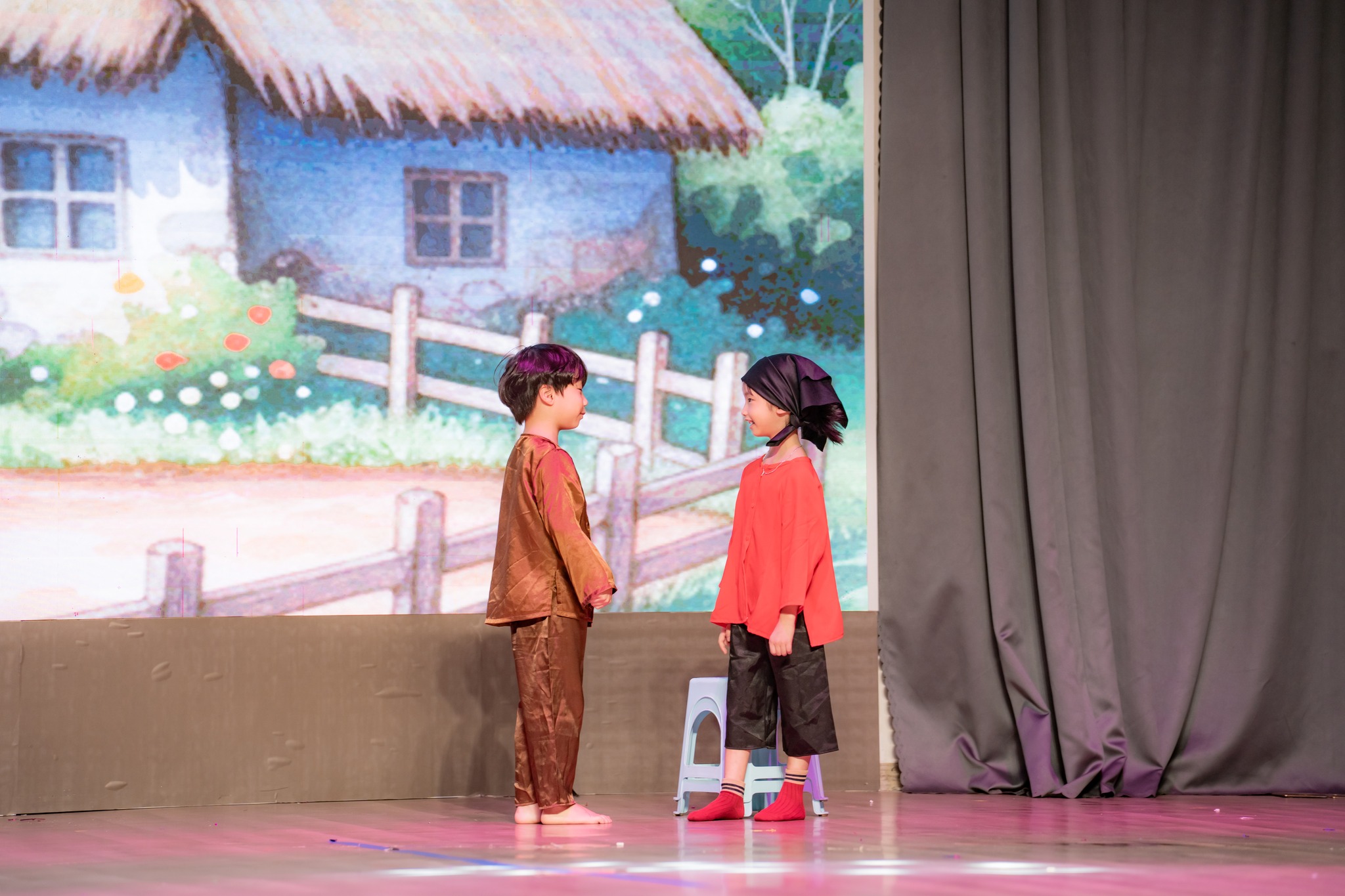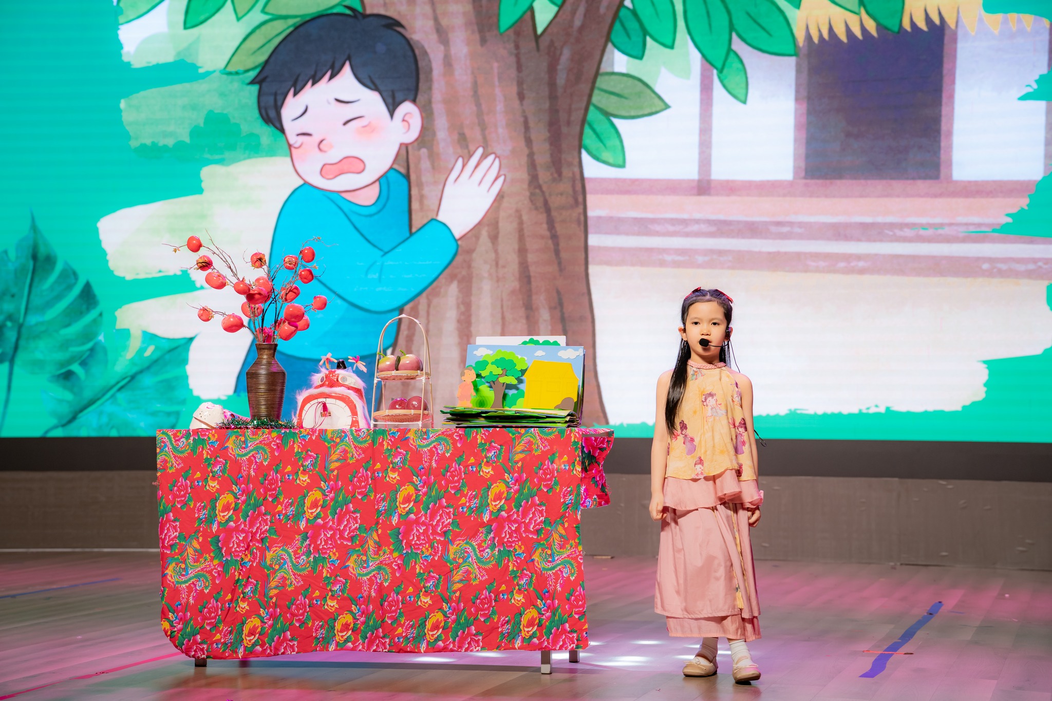 Với cuộc thi kể chuyện “Vườn Trăng Cổ Tích”, 17 thí sinh tiêu biểu từ khối 1, 2, 3 đã thật sự tỏa sáng. Các con hóa thân thành các nhân vật trong những câu chuyện quen thuộc như Cóc kiện Trời, Sự tích chú Cuội, Sự tích Tết Trung thu… Với giọng kể truyền cảm, đạo cụ chuẩn bị công phu, mỗi tiết mục đều để lại dư âm và thông điệp sâu sắc trong lòng người xem.