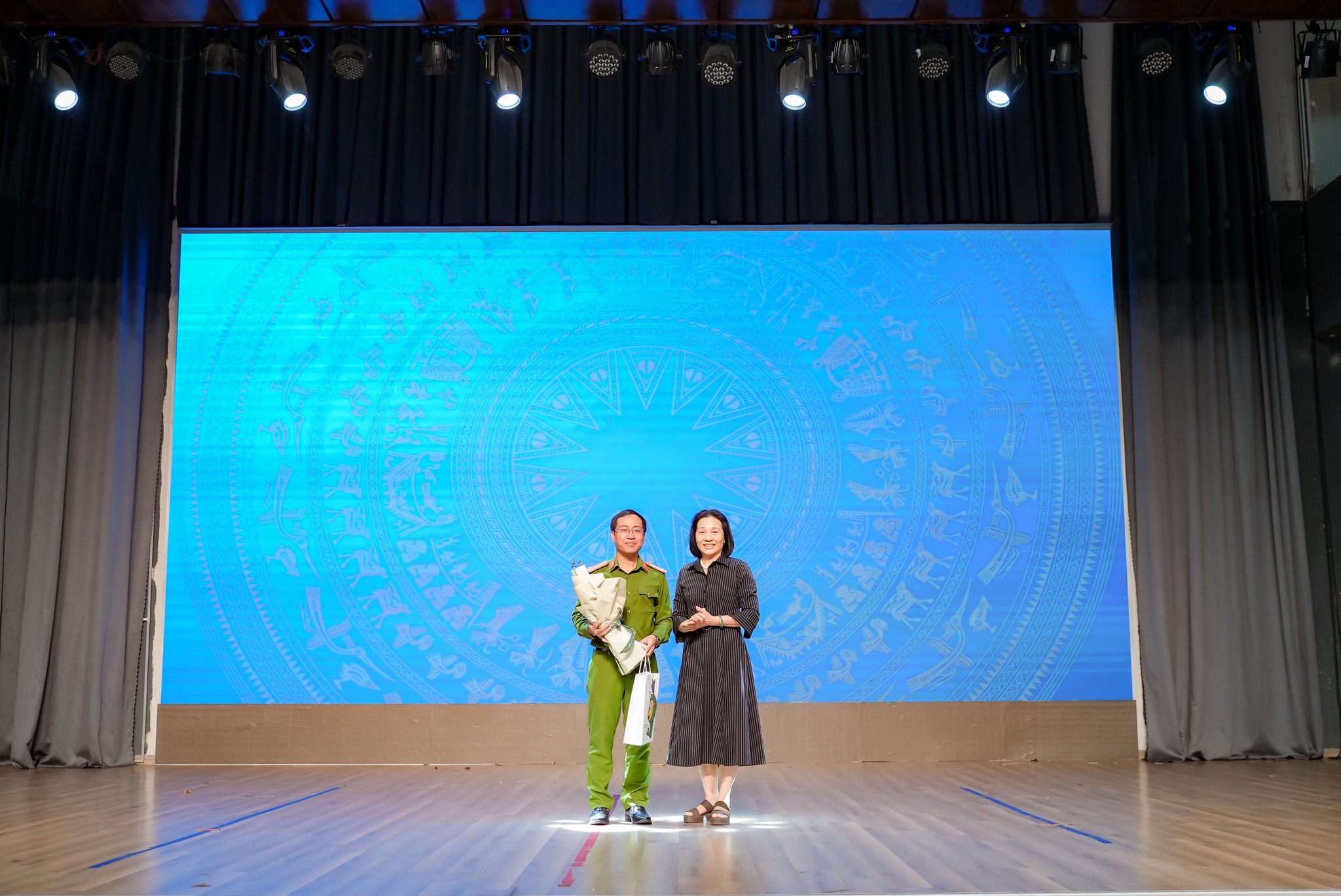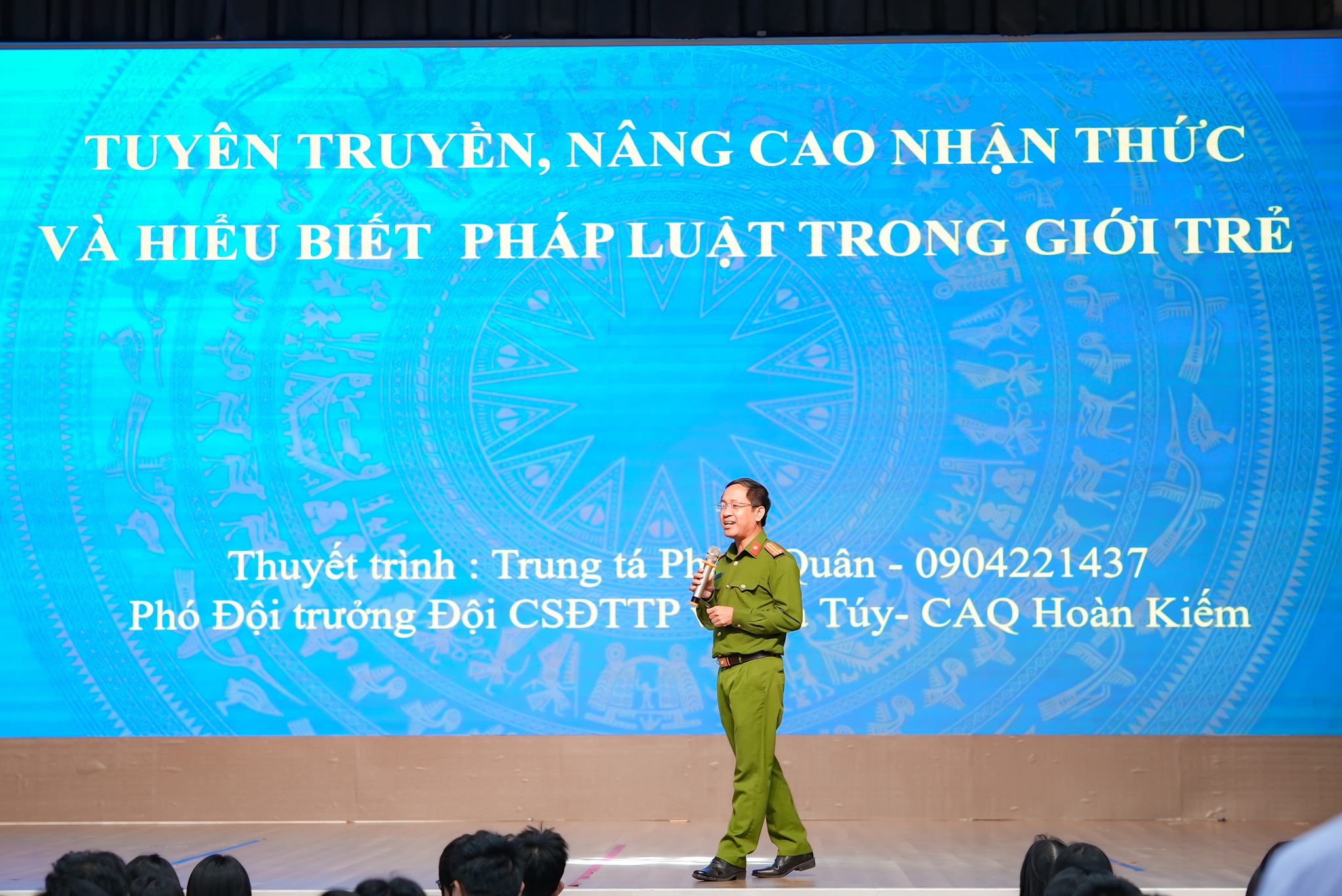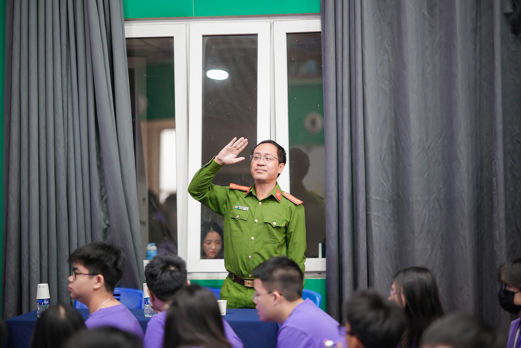 Đồng hành cùng các con học sinh là Trung tá Phạm Cánh Quân - Phòng Tham mưu tổng hợp, Cục Cảnh sát Điều tra tội phạm về m.a t.ú.y. Với nhiều năm kinh nghiệm thực tế, Trung tá Phạm Cánh Quân đã chia sẻ những câu chuyện chân thực và sinh động về các vấn đề mà giới trẻ hiện nay dễ gặp phải: nghiện mạng, nghiện game, tụ tập theo nhóm b.ạ.o l.ự.c, sử dụng chất kích thích hay các loại m.a t.ú.y thế hệ mới núp bóng dưới dạng bánh kẹo, nước uống, t.h.u.ố.c. l.á. điện tử.