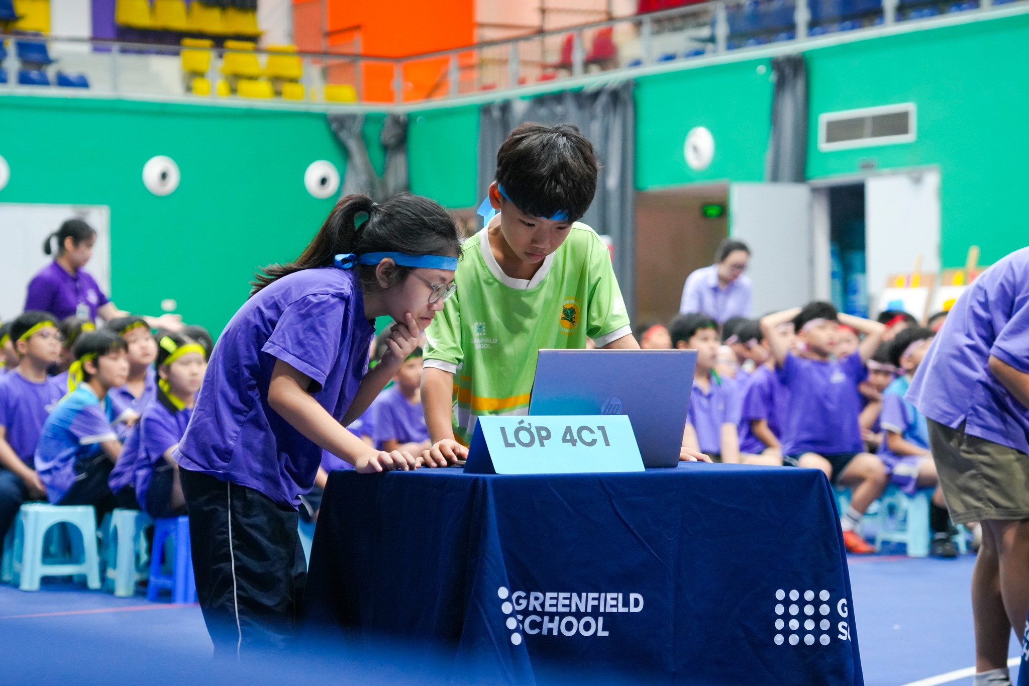 - Vòng 1 - Đấu trường văn hóa Việt: Mở màn đầy kịch tính với công cụ Quizizz gồm 11 câu hỏi trắc nghiệm về chủ đề văn hóa 3 miền tại Việt Nam (Ẩm thực, văn hóa, ngôn ngữ, địa lý, đời sống). Các con tham gia theo cặp, sử dụng thiết bị điện tử để trực tiếp nhập đáp án. Đây là dịp để các bạn nhỏ vận dụng linh hoạt kiến thức đã học trên lớp, thể hiện tư duy nhạy bén và khả năng làm việc nhóm ăn ý để bứt phá ngay từ những giây đầu tiên.