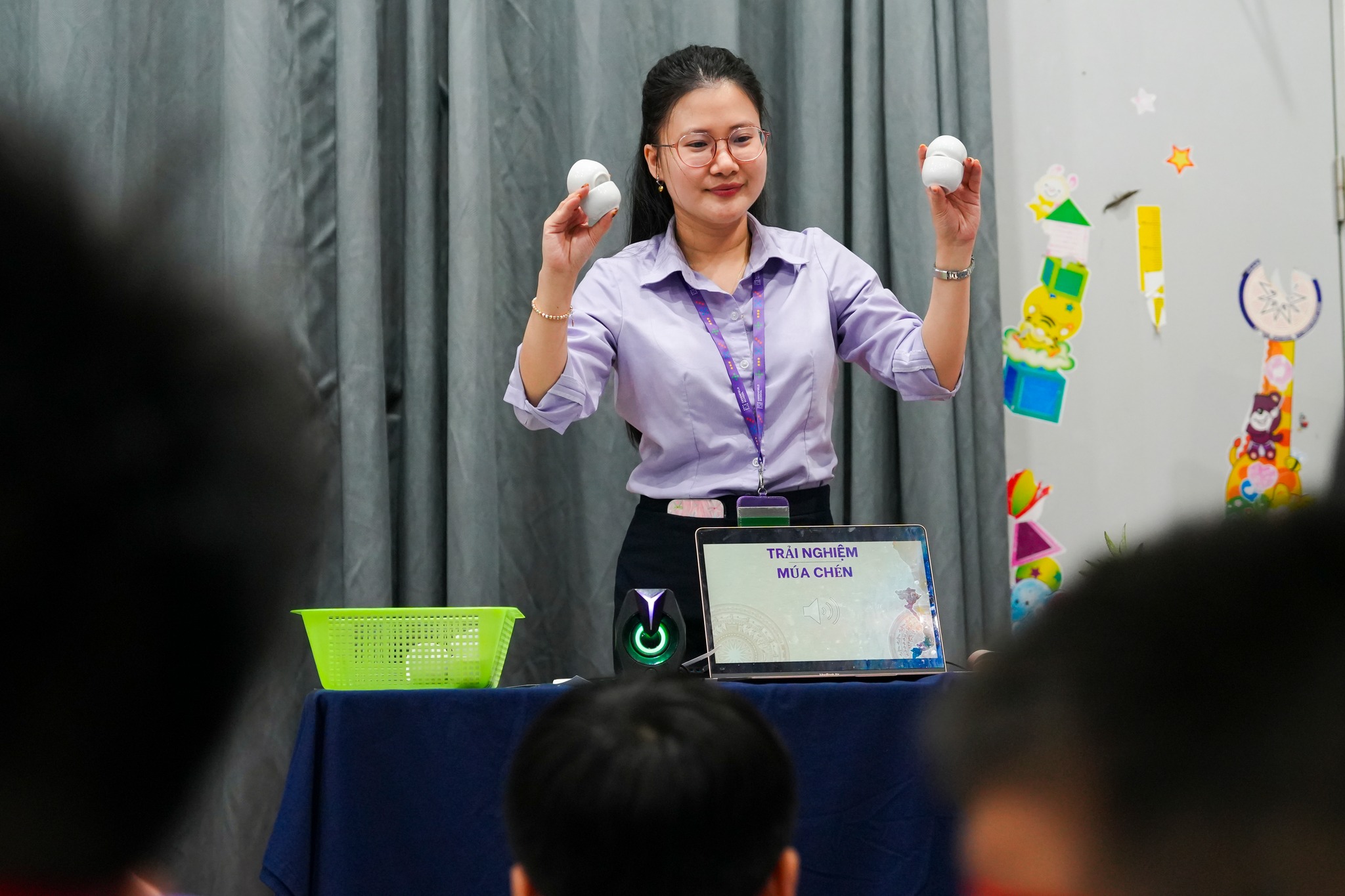 +Tụ điểm 4 - Âm vang đất Việt: Các bạn nhỏ được làm quen với sự phong phú của ngôn ngữ vùng miền qua trò chơi “Đoán miền qua lời nói”. Đặc biệt, các con còn được trực tiếp học và thực hành điệu “Múa chén” đặc trưng của miền Trung với các động tác nâng chén, xoay chén và bước nhịp đầy chuyên nghiệp.