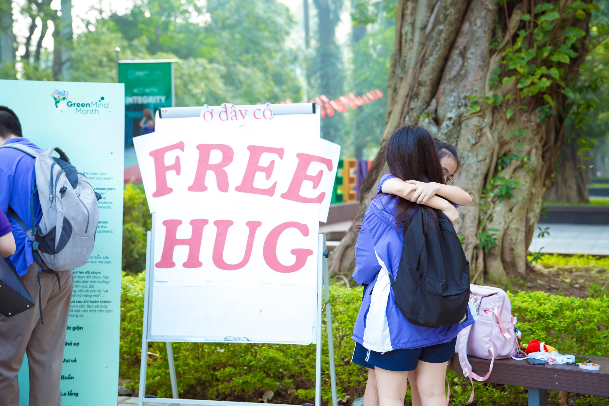 Nằm trong khuôn khổ Greenmind Month, hoạt động “Sợi cảm xúc – Dệt thấu cảm” đã diễn ra vào sáng nay. Mỗi thầy cô, học sinh có thể tự do chọn một sợi len tượng trưng cho cảm xúc hiện tại hoặc cảm xúc mong muốn trong ngày, cùng “dệt” nên bức tranh cảm xúc chung phong phú. Đặc biệt, góc “Free Hugs” – Ôm miễn phí trở thành điểm nhấn ý nghĩa, nơi thầy cô và các con trao nhau những cái ôm thật chặt, lan tỏa năng lượng tích cực cho ngày mới đầy hứng khởi.