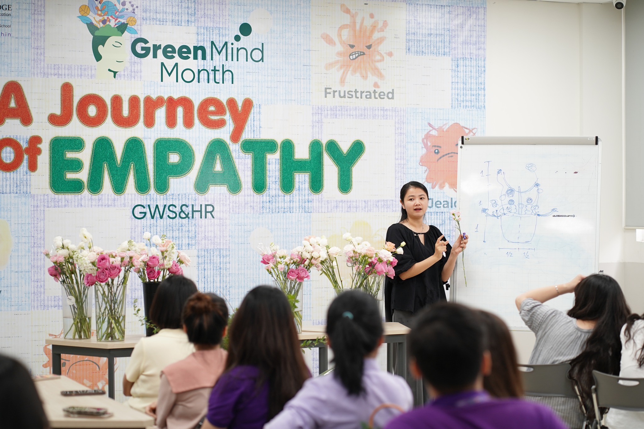 Song song với hoạt động tổ chức cho học sinh, GFS Ecopark cũng tổ chức chuỗi workshop dành cho cán bộ nhân viên trong Greenmind Month như “Chăm sóc khu vườn tâm trí” - học cách “sơ cứu tinh thần”, “Blooming Minds” - “trải nghiệm cắm hoa” và “Nón Lá” - “giải tỏa tâm trí, gìn giữ nét đẹp truyền thống qua hoạt động làm nón lá”.