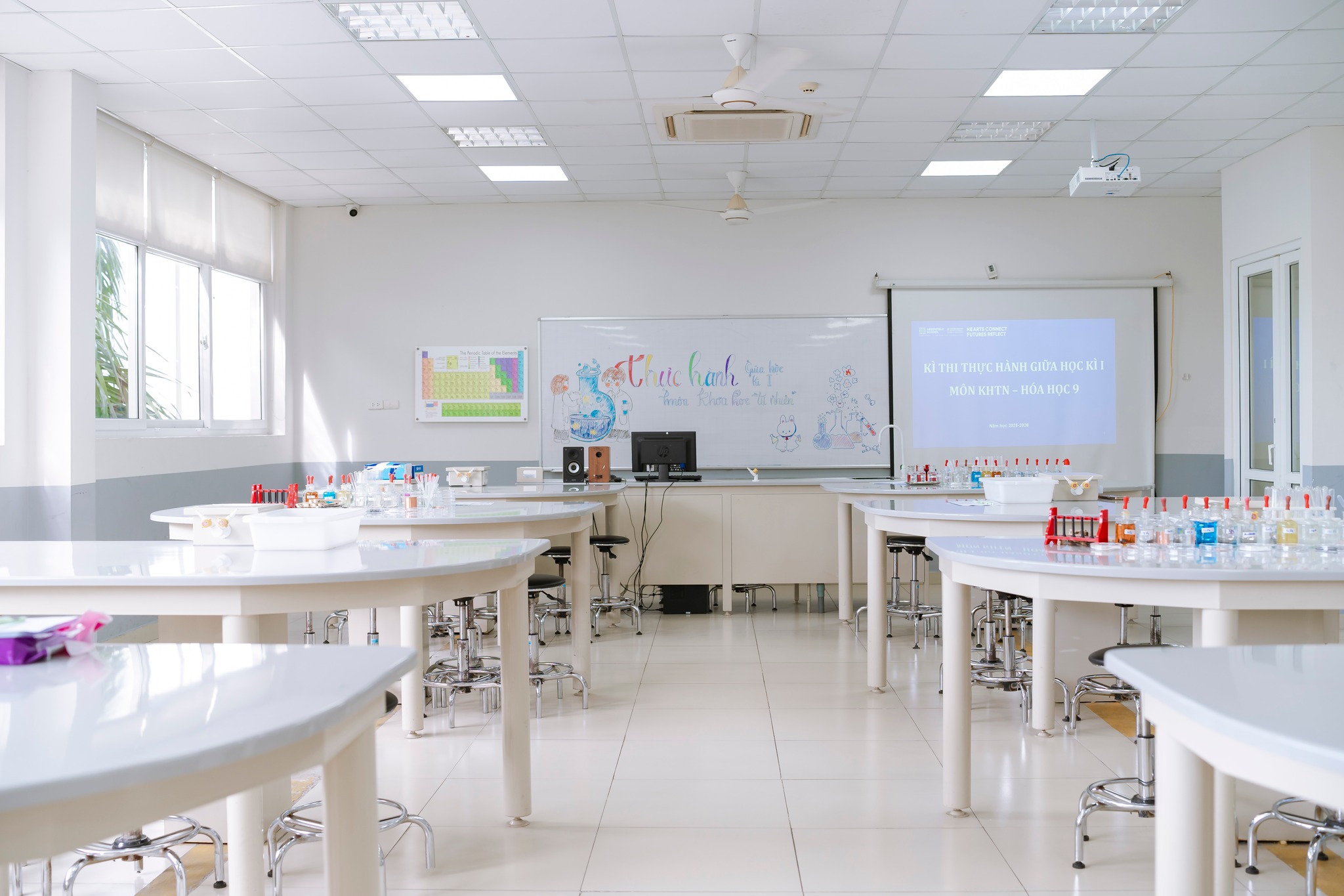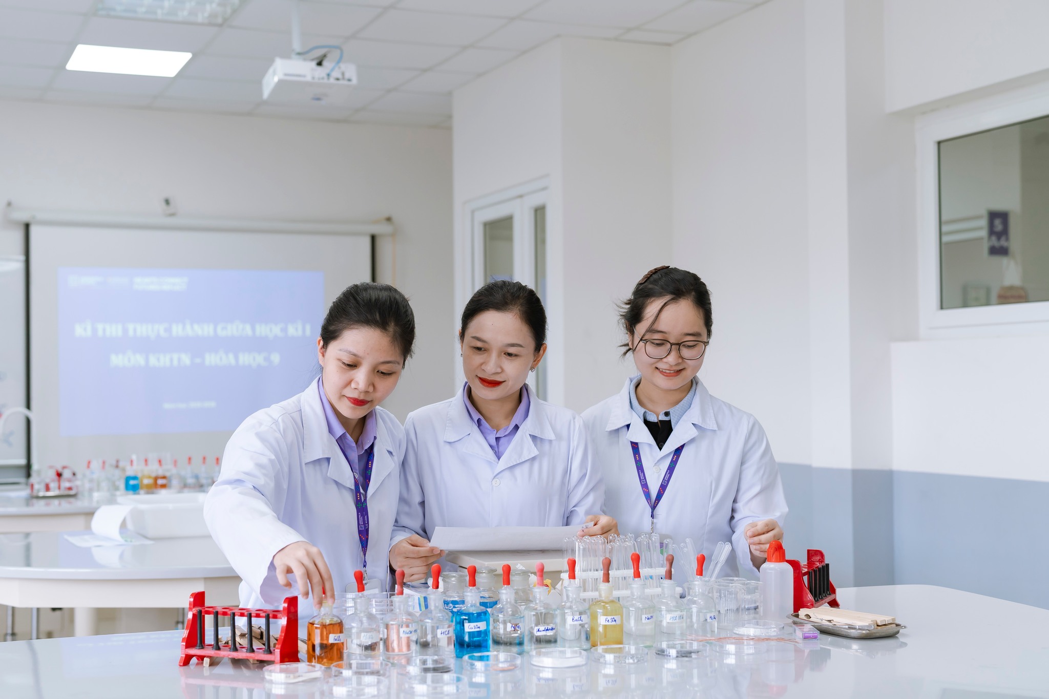 Với mong muốn biến kiến thức trên giấy thành trải nghiệm thực tế, rèn luyện kỹ năng thao tác trong phòng thí nghiệm và khắc sâu kiến thức theo tinh thần “học đi đôi với hành”, trong 3 ngày (23-25/9), các con học sinh Khối 9 đã tham gia kỳ kiểm tra thực hành giữa kỳ môn Khoa học tự nhiên.