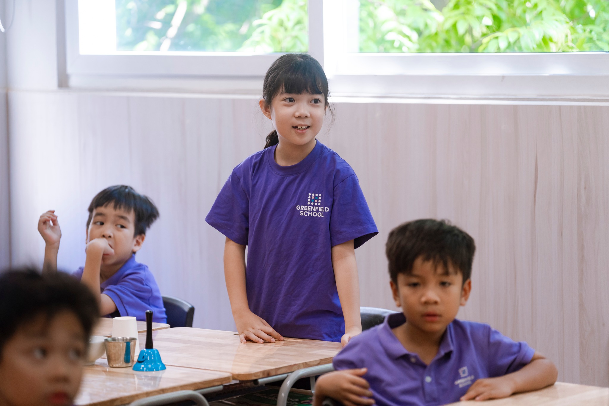 Khi sản phẩm hoàn thành, các con học sinh hào hứng bước lên giới thiệu ý tưởng của nhóm mình. Các bạn khác chăm chú lắng nghe, gật gù tán thưởng hoặc góp ý một cách nhẹ nhàng. Không chỉ rèn kỹ năng thuyết trình, đây còn là dịp các con học cách tôn trọng, phản hồi tích cực và lắng nghe để thật sự thấu hiểu.