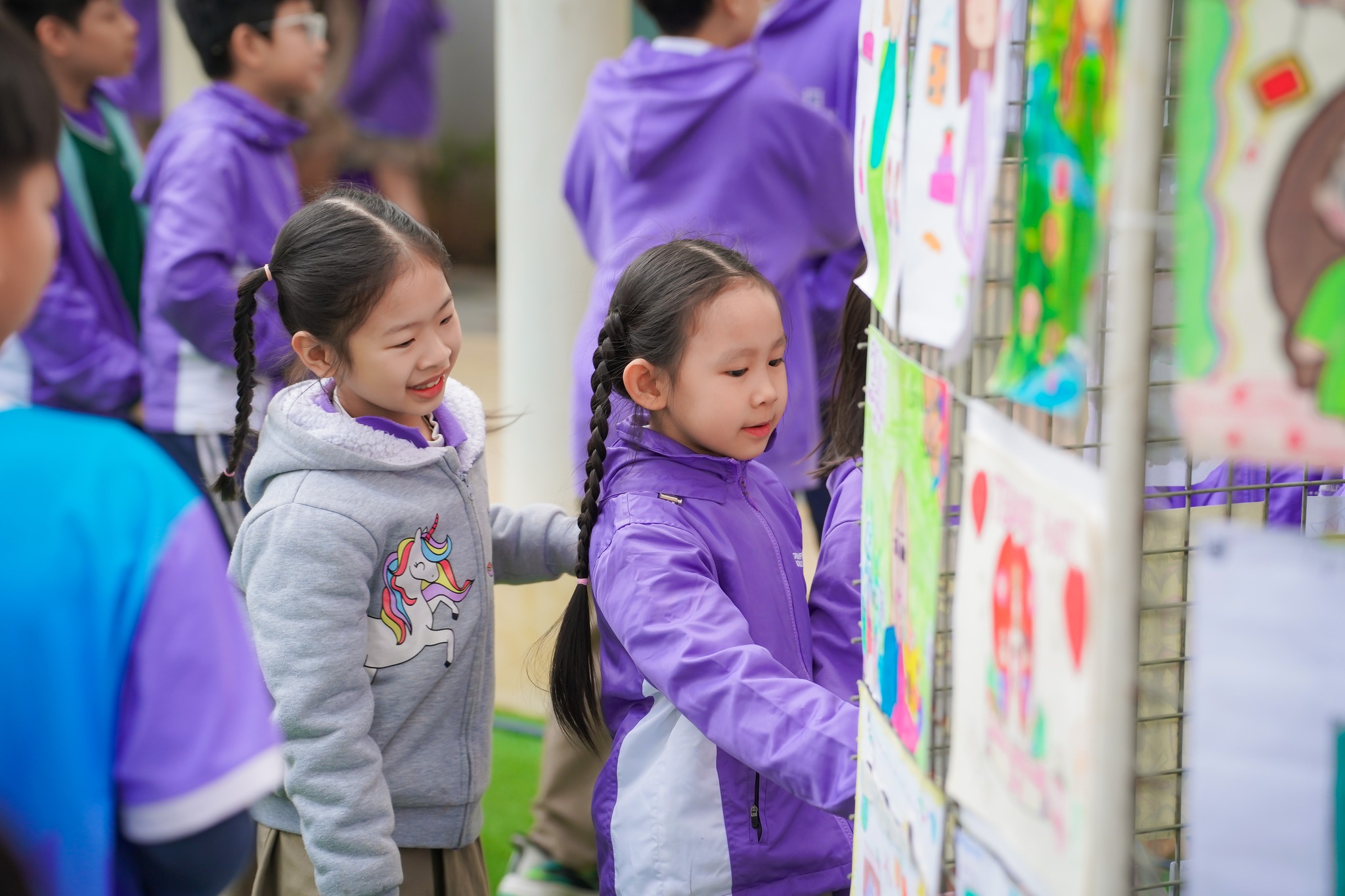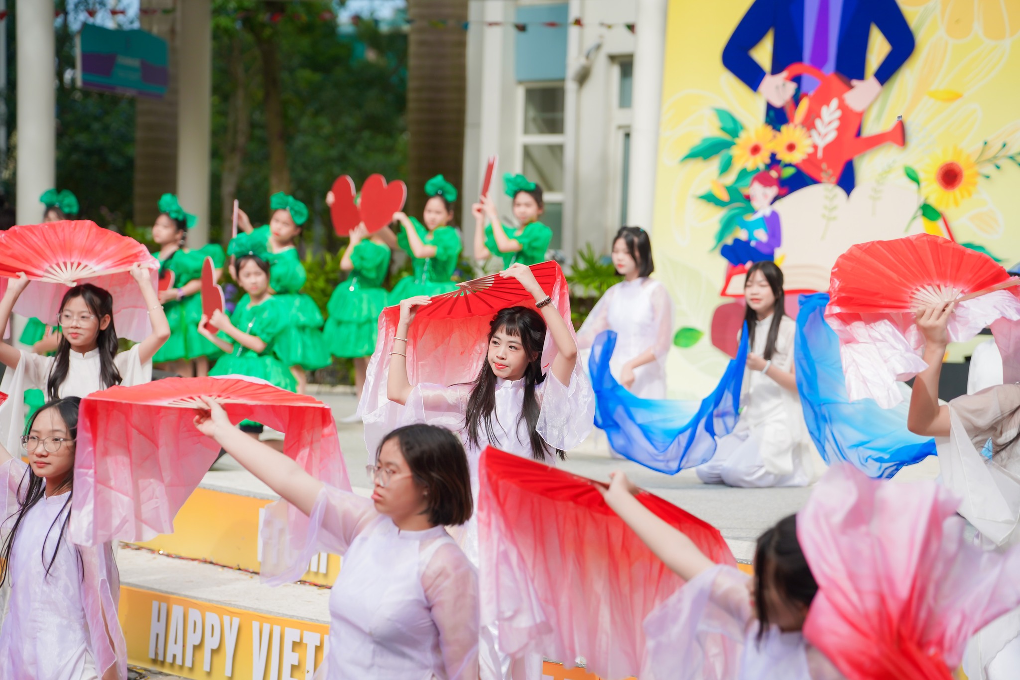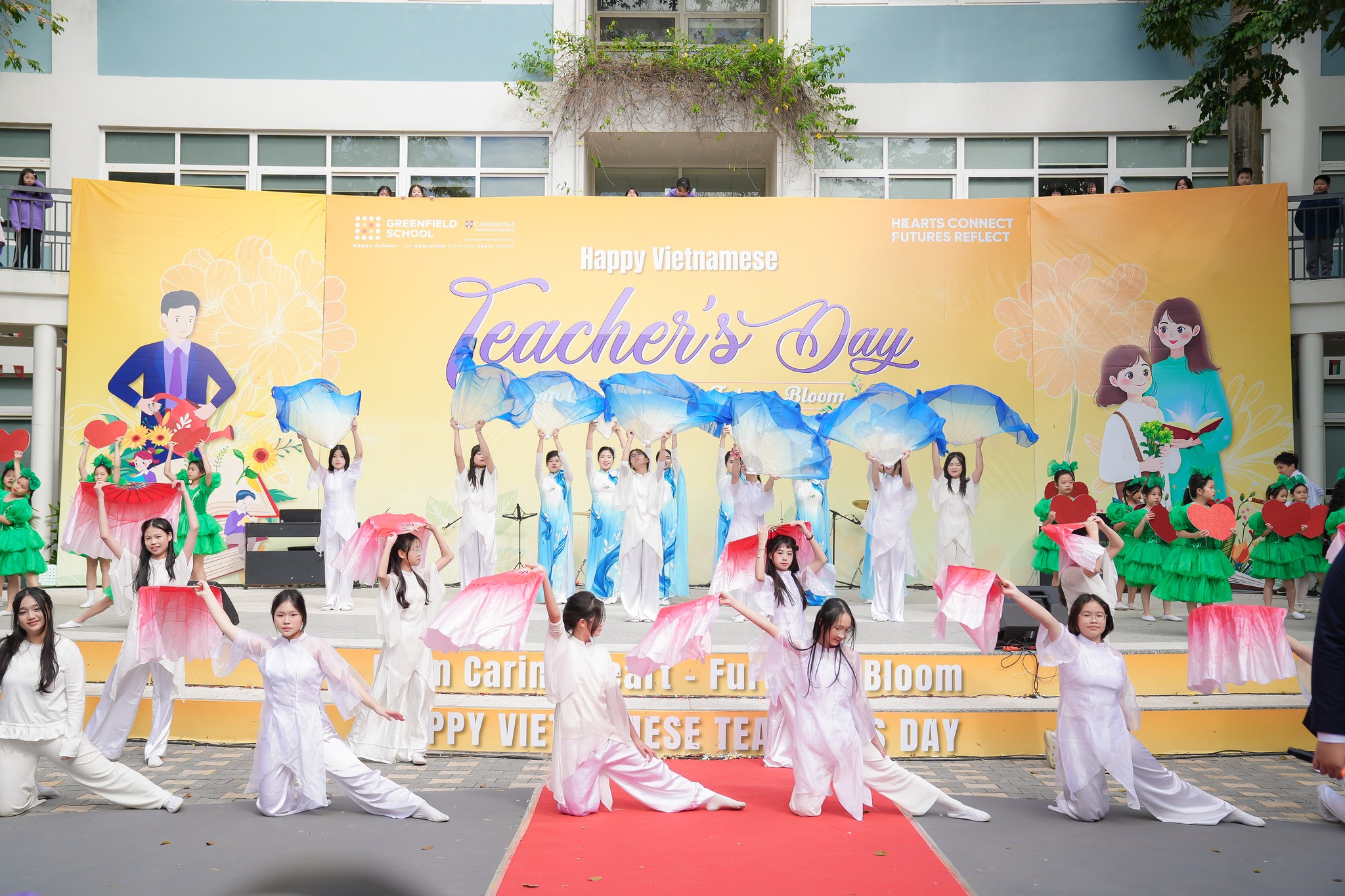 Sự kiện càng thêm sôi động và rực rỡ nhờ không gian trưng bày nghệ thuật và những tiết mục văn nghệ đầy cảm xúc. Tất cả đều là tâm huyết được học sinh chuẩn bị kỹ lưỡng nhiều tuần: từ lời ca, điệu múa, đến những tác phẩm handmade, tranh vẽ chân dung, và cả những bức thư tay, bài thơ chứa đựng lòng tri ân sâu sắc gửi đến thầy cô.