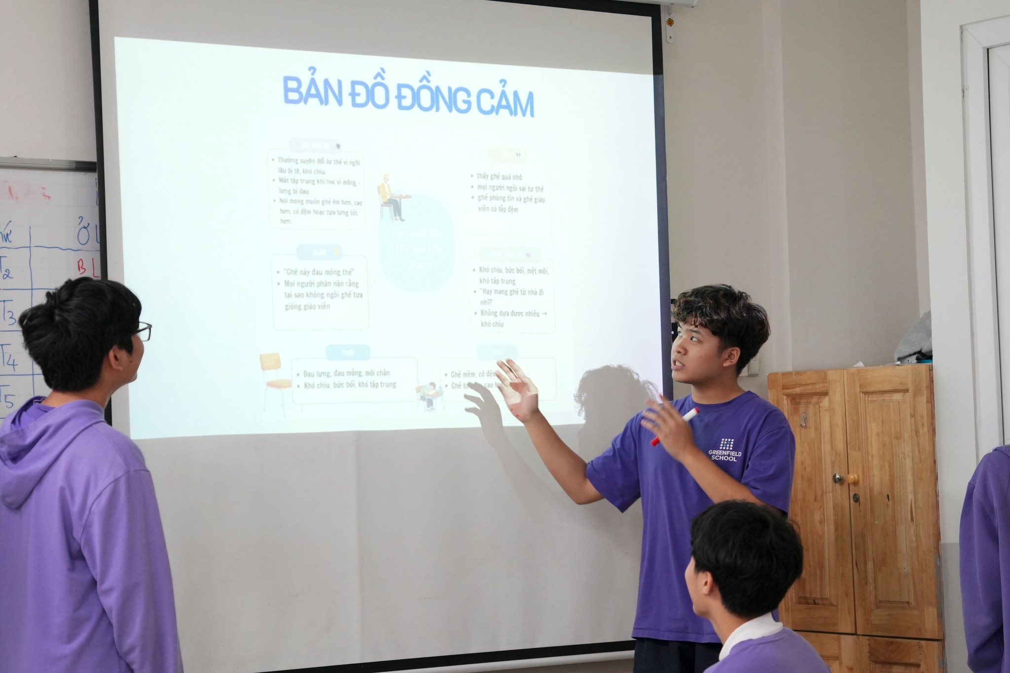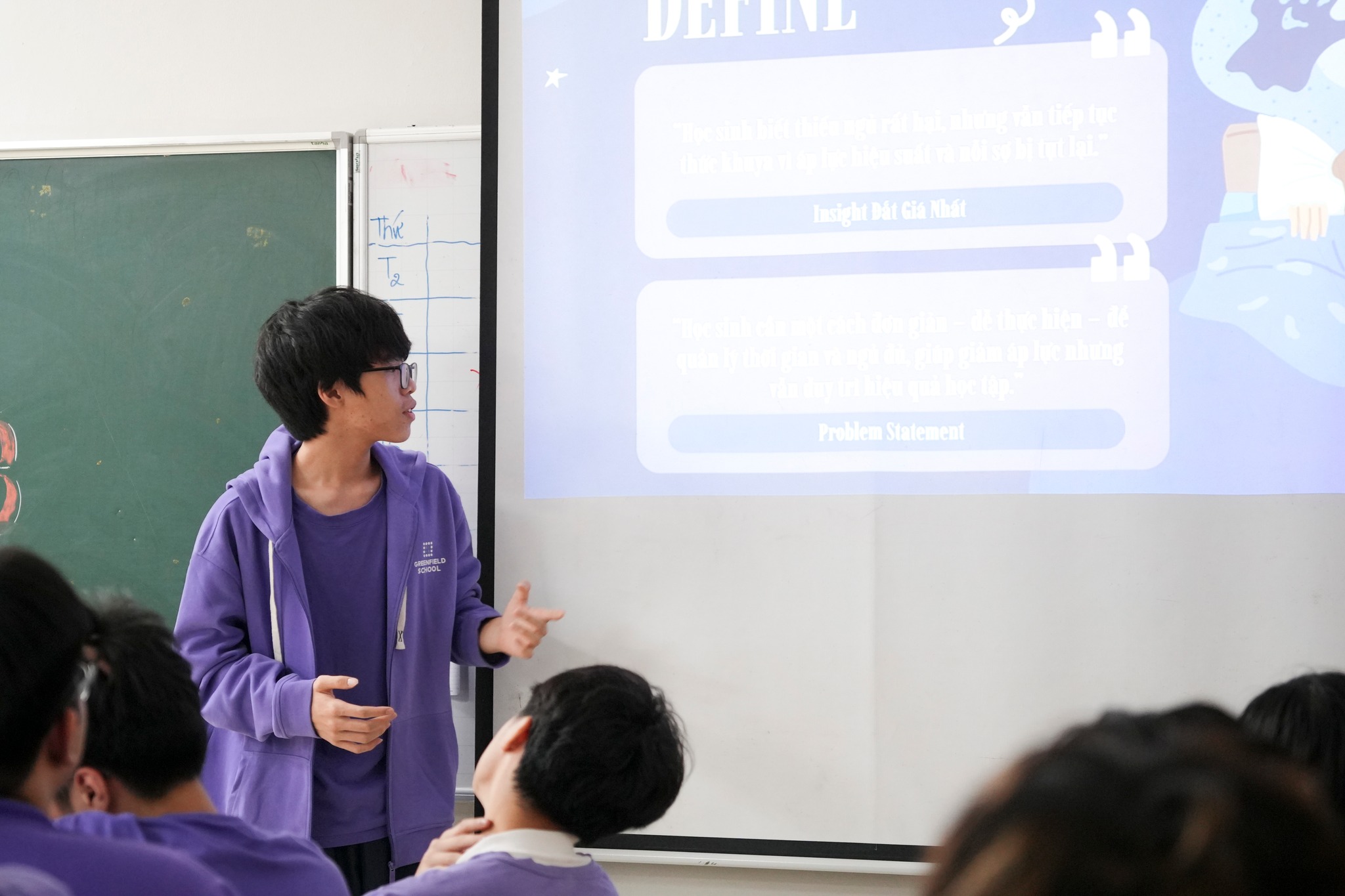 Để giúp các con chủ động đối diện, phân tích và tìm kiếm những giải pháp hiệu quả, học phần Tư duy Thiết kế (Design Thinking) đã được đưa vào giảng dạy cho các con học sinh Khối 11 Hệ Song ngữ Công dân toàn cầu trong bộ môn PDS (Personal Development Skills).