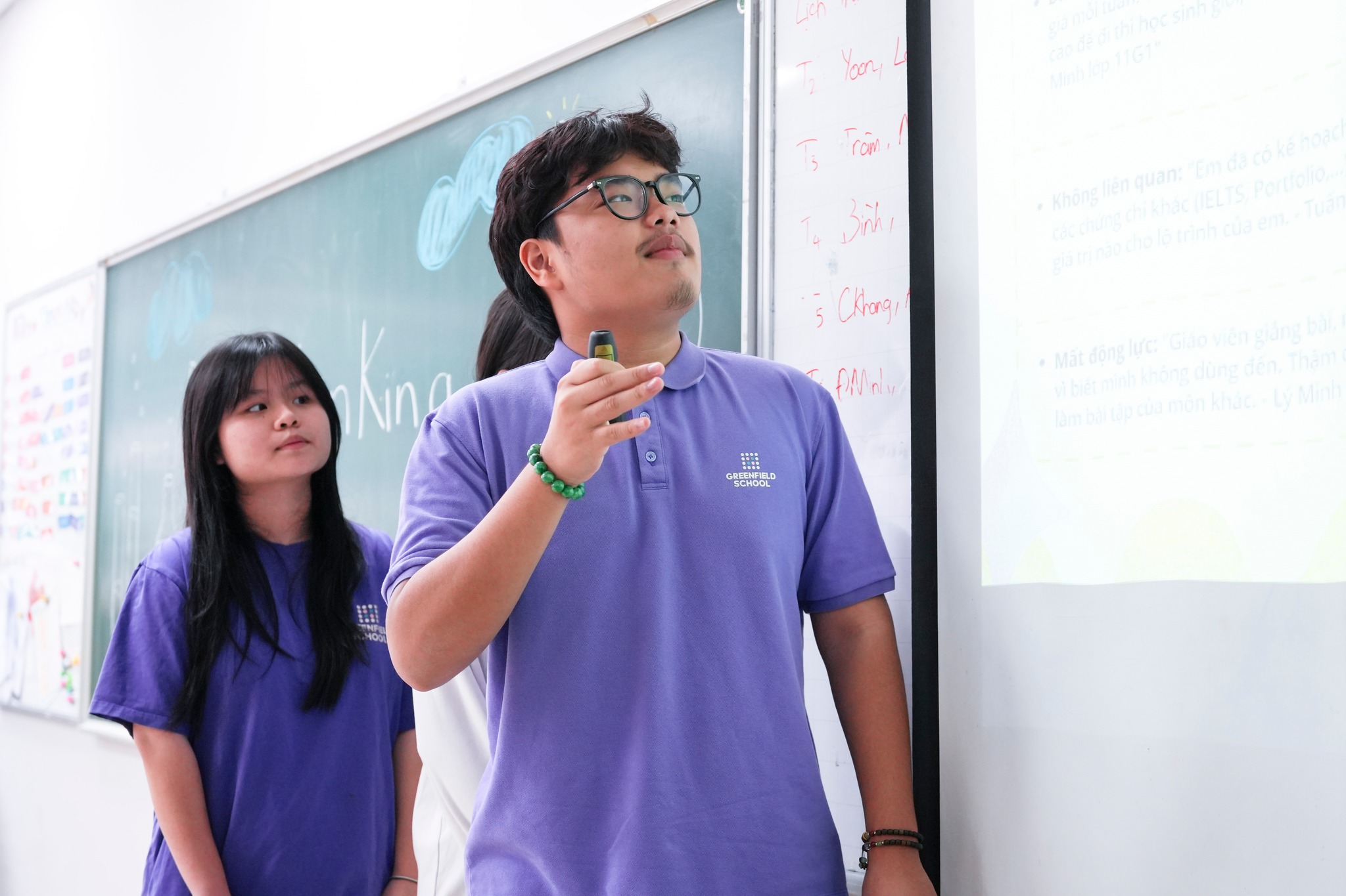 Kết thúc hành trình học tập, lớp học đã biến thành một không gian sáng tạo sôi nổi tại buổi báo cáo cuối kỳ (Showcase Day). 10 nhóm dự án của 2 lớp (11G1; 11G2) là 10 mảnh ghép đầy màu sắc, thể hiện sự quan sát tinh tế và khát vọng cải thiện môi trường học đường của các con. Các dự án tập trung vào nhiều khía cạnh: