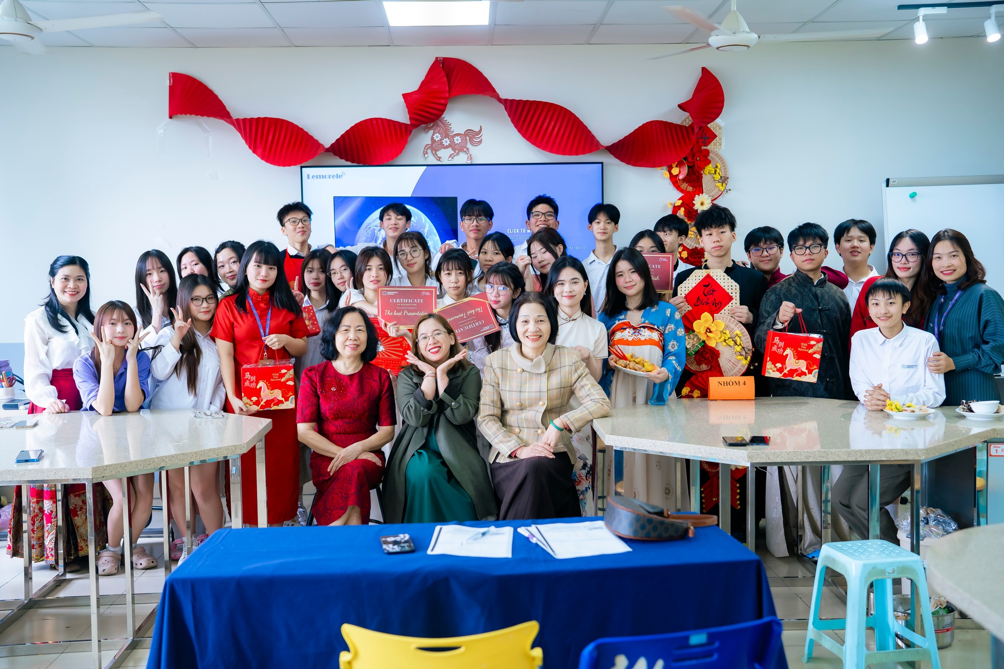 Kết thúc hoạt động trải nghiệm, giải thưởng “Nhóm thuyết trình xuất sắc nhất”, “Nhóm có món ăn ấn tượng nhất”, “Nhóm có phần giới thiệu món ăn hay nhất”, “Nhóm teamwork tốt nhất” đã được trao cho các con học sinh. Nhưng quan trọng hơn cả, thông qua hoạt động này, các con đã có dịp khám khá khả năng ngôn ngữ của chính mình thông qua văn hóa. Từ đó, các con có thêm động lực để học tiếng Trung và chạm tay vào ước mơ du học.