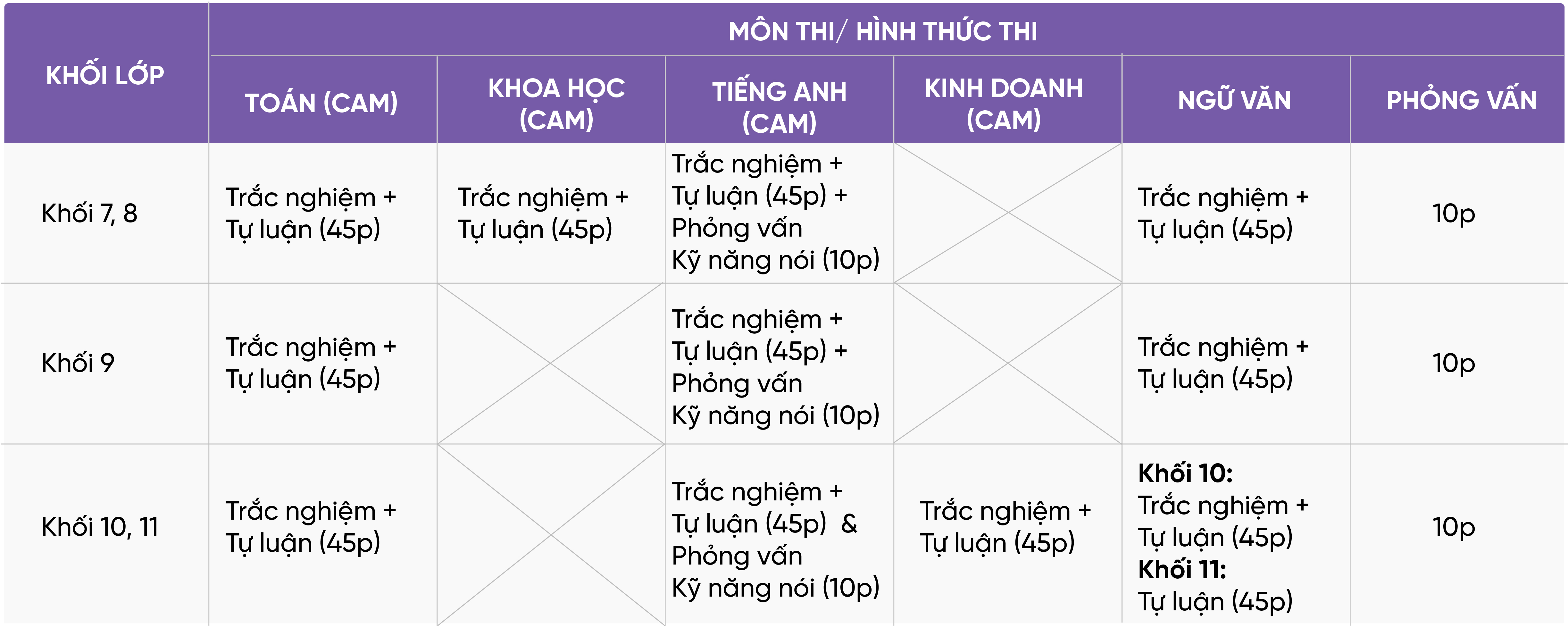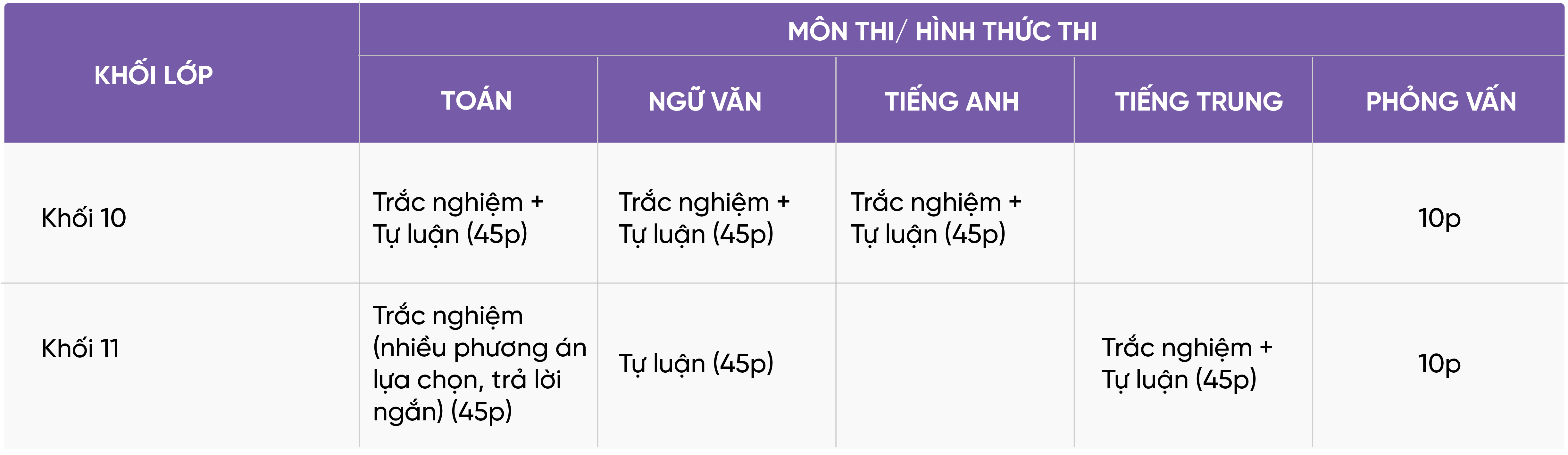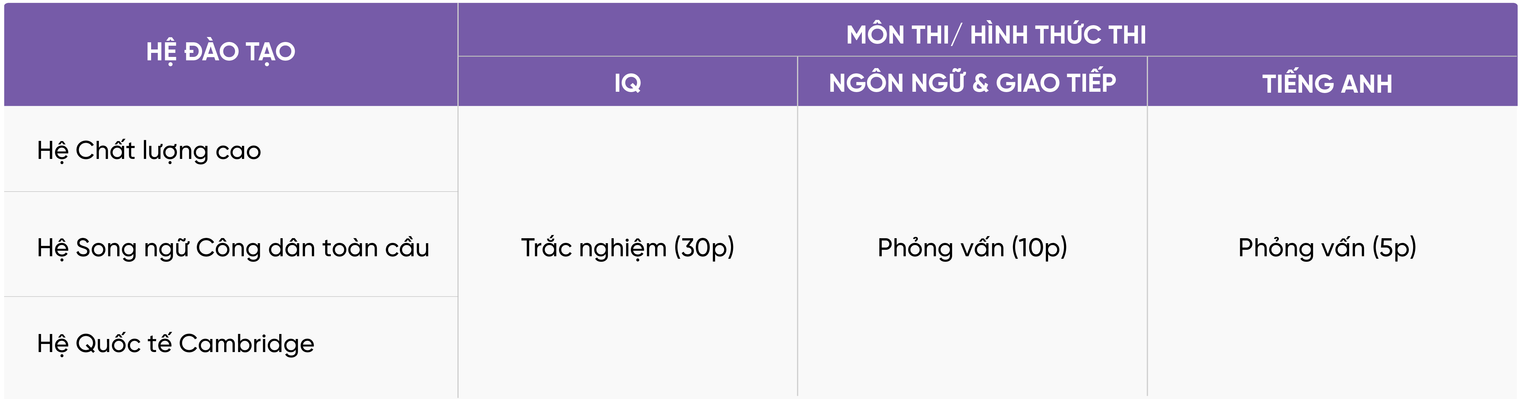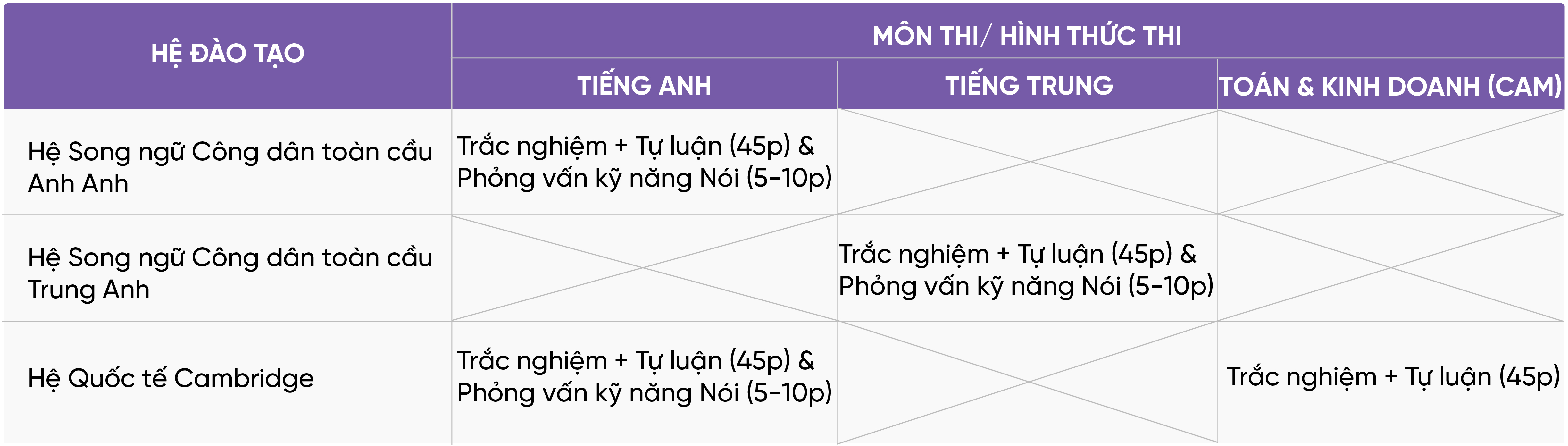 3.1. Đối với học sinh có kết quả Trúng tuyển hệ Chất lượng cao, nhưng có nhu cầu chuyển sang các hệ (i) Song ngữ Công dân toàn cầu; hoặc (ii) Quốc tế Cambridge, cần phải thực hiện bài thi kiểm tra năng lực theo yêu cầu mỗi hệ, được quy định như sau: